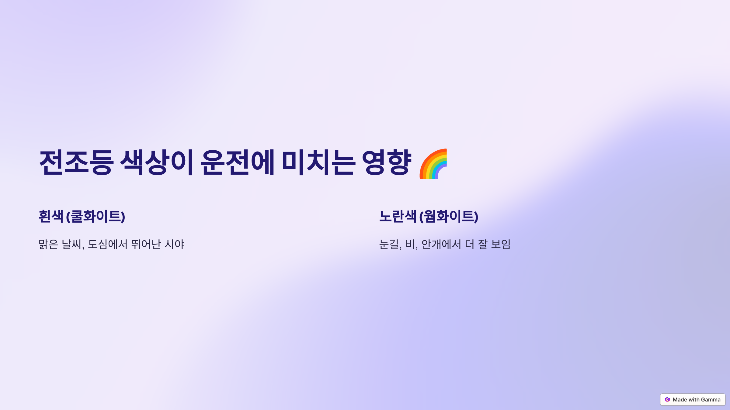 - 전조등 색상이 운전에 미치는 영향