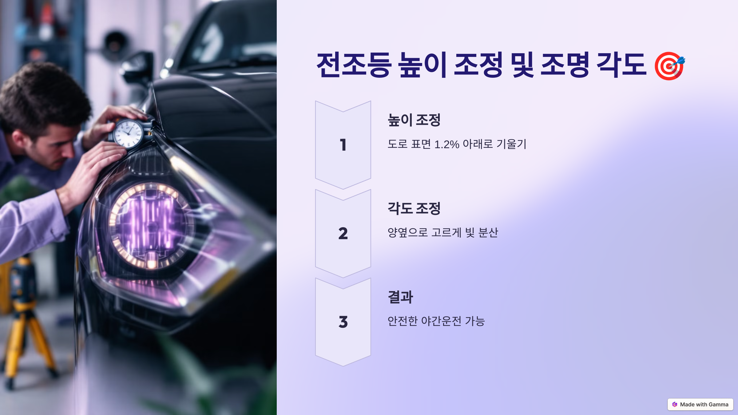 전조등 높이 조정 및 조명 각도 🎯