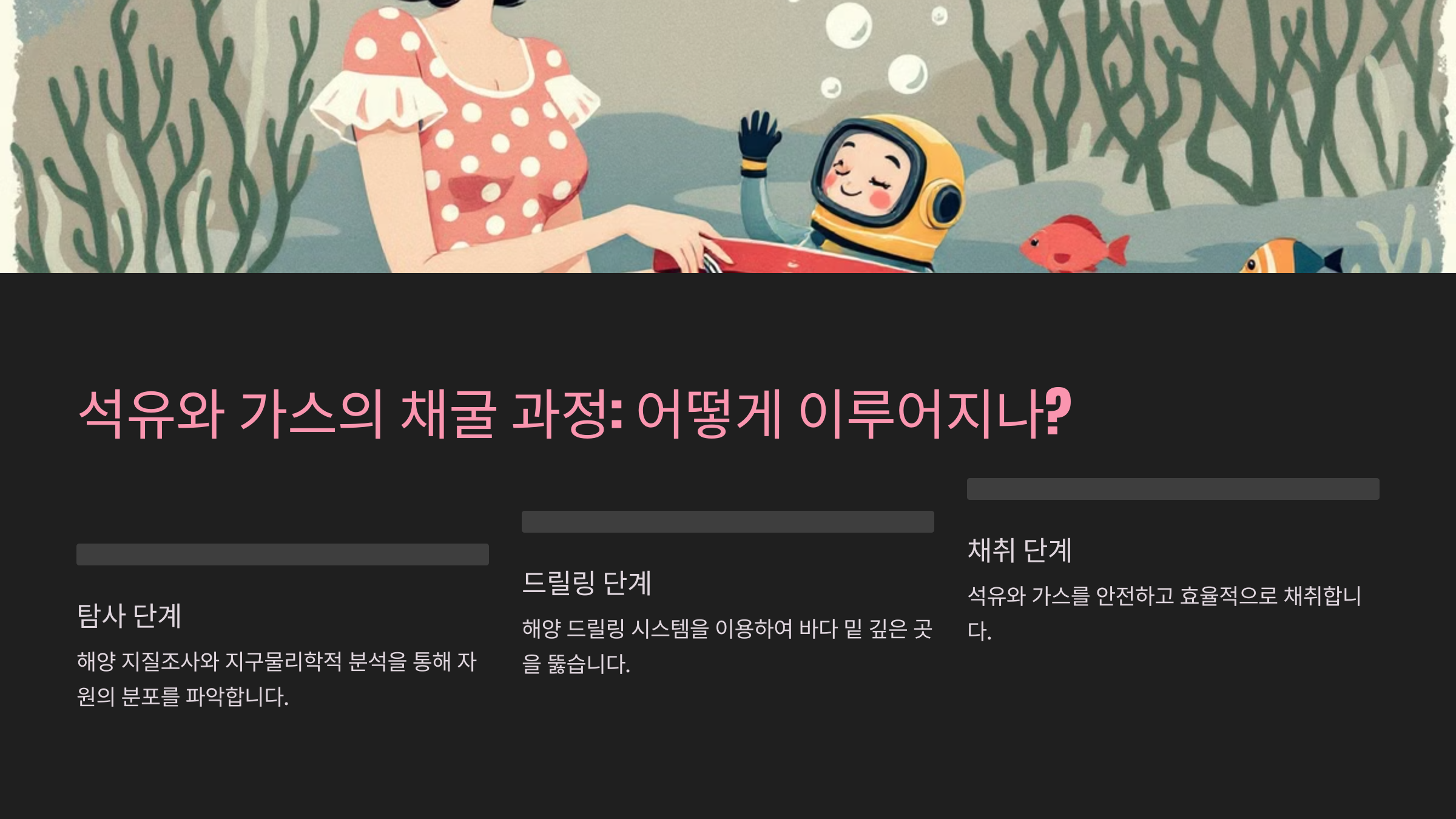 석유와 가스는 보통 바다 깊은 곳에서 찾을 수 있는 천연 자원으로, 이를 채굴하려면 고도의 기술이 필요합니다. 첫 단계는 정확한 위치를 파악하는 탐사 과정으로, 해양 지질조사와 지구물리학적 분석을 통해 자원의 분포를 파악합니다. 이후에는 해양 드릴링 시스템을 이용하여 바다 밑 깊은 곳을 뚫고, 석유와 가스를 채취합니다. 대왕고래 프로젝트에서도 이러한 첨단 기술을 활용하여 심해에서 자원을 안전하고 효율적으로 채굴하는 방법을 모색하고 있습니다.