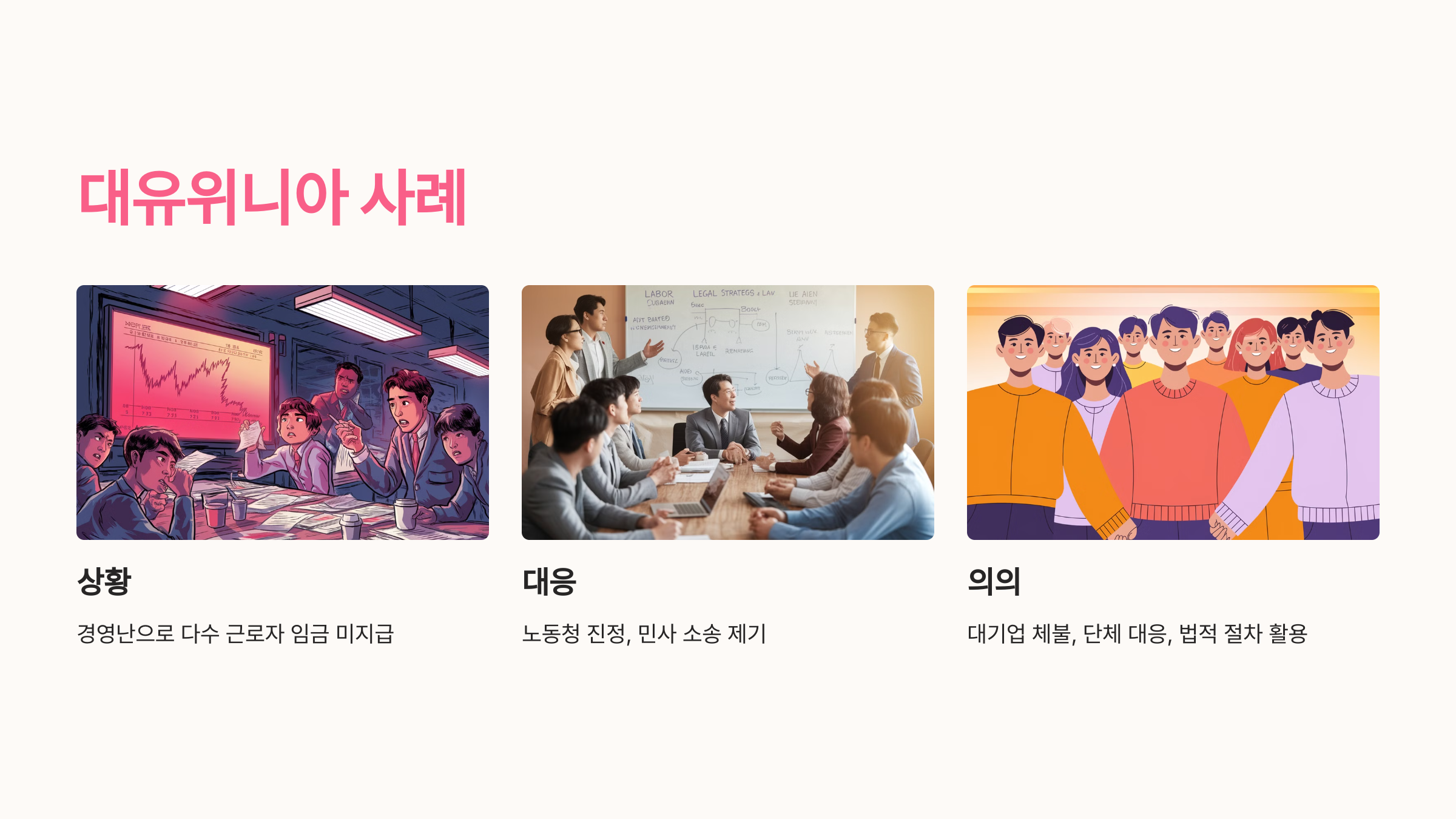 - 근로자의 단체 대응: 피해 근로자들이 협력하여 체계적으로 문제를 해결한 점.