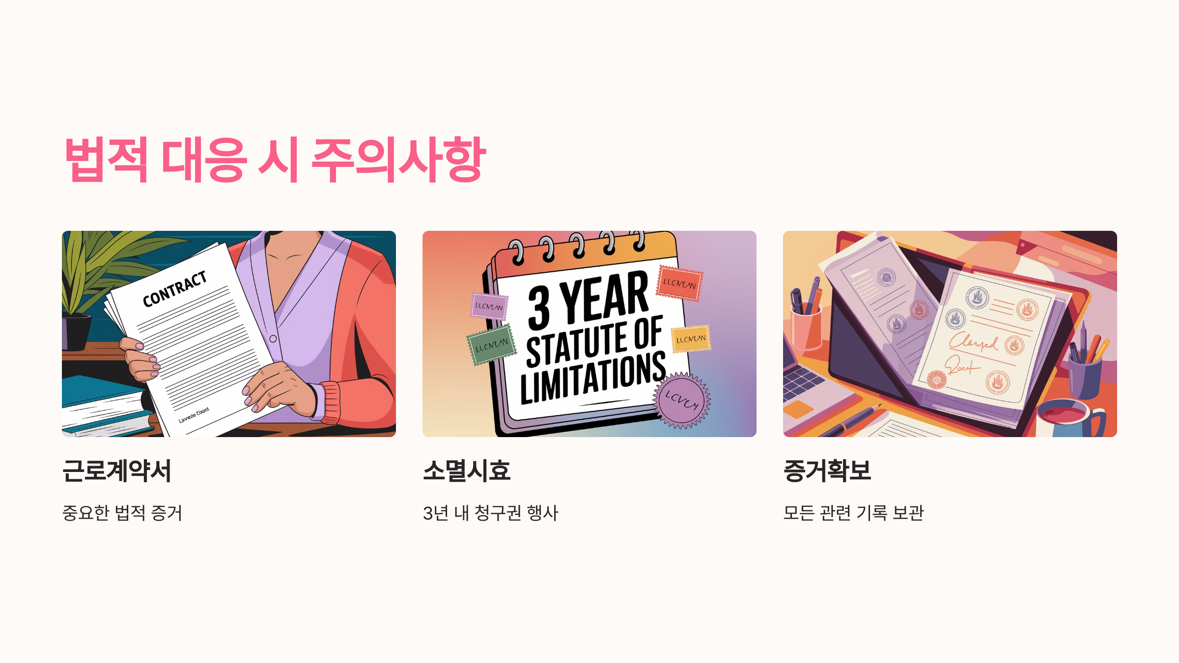 - 법적 절차를 통한 해결 가능성: 근로기준법과 노동청을 활용한 사례.