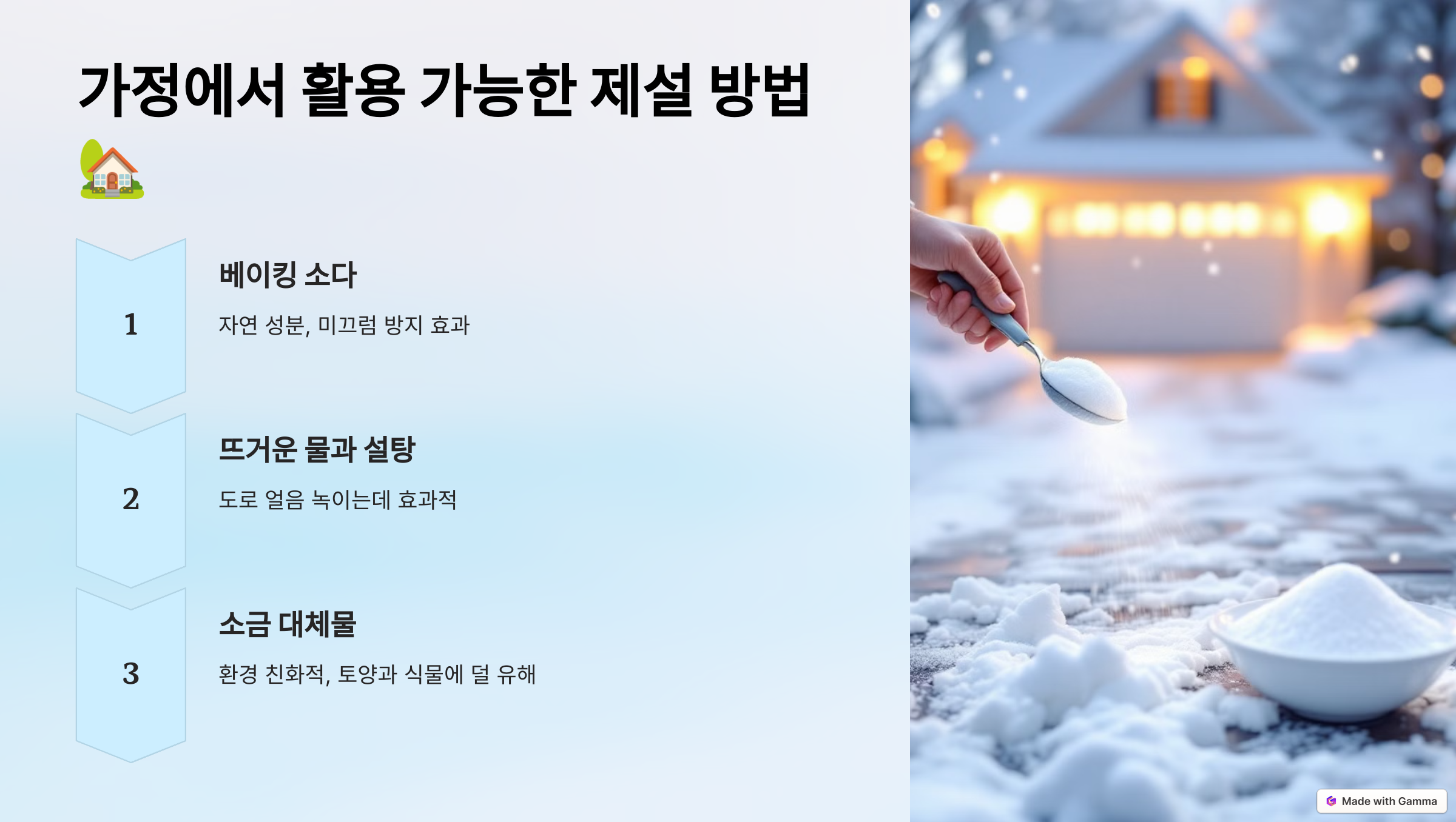 - 가정에서 활용 가능한 제설 방법
